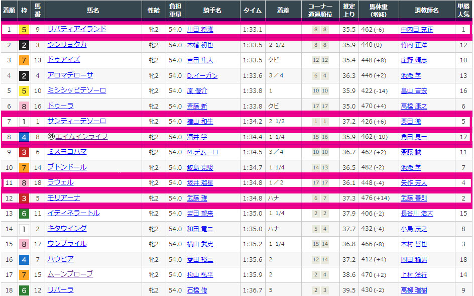 そして、阪神ジュベナイルフィリーズの結果はコチラ↓