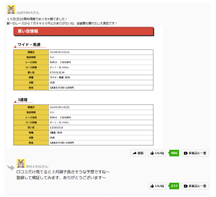 3月1日(日)3月一発目となる無料予想で11万1400円的中に導いた競馬予想サイトが前日も結果で魅せつけた!