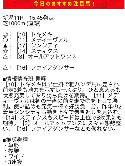 こちらも予想印と見解と推奨券種が載っていて、予想印△の連下は2頭になっていますね。