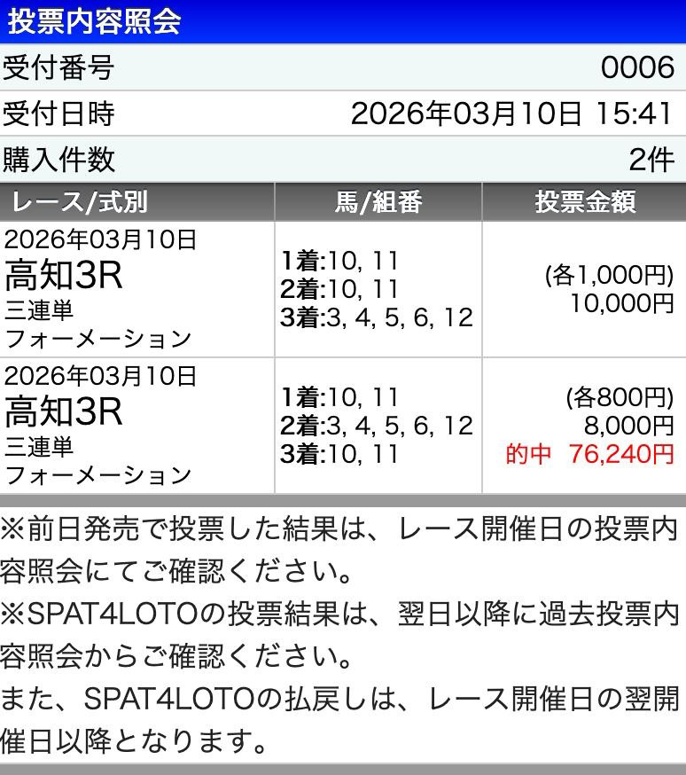 もう2年以上愛用していますが今も昔も変わらぬ的中率で安定した収支が得られています。 今回もダブル的中で5万1600円払い戻し、麒麟に出会うまで散々騙されてきたからようやく信用できるサイトを永続的に利用できています。