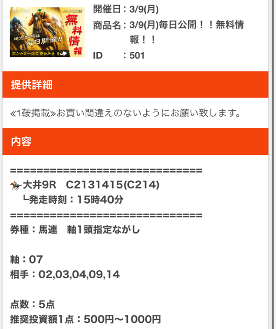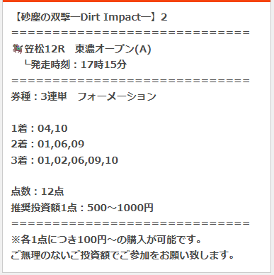弥生賞カチカチの結果だったけどよく当ててくれました、そこを高く評価しています。 競馬予想会社なら硬い決着と分かっていれば買い方や1点当たりの投資金額が変動しますからね、そのへんの予想は上手いなと感じました。