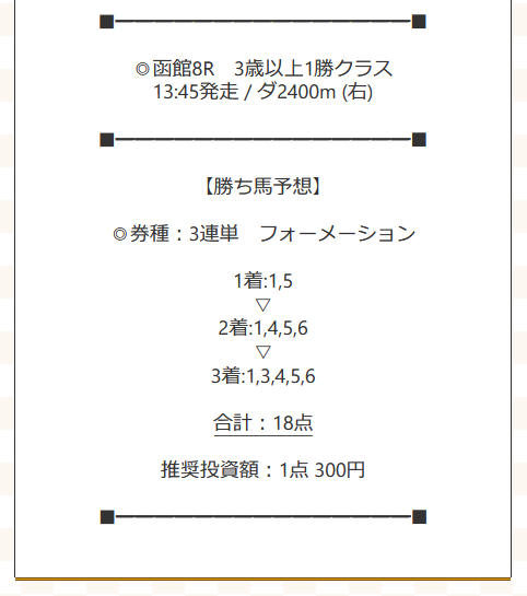 結構絞られてる予想だったから乗りやすかったです。推奨されてる投資額もそんなに大金じゃないし、とっかかりやすくて良いサイトだと思います。