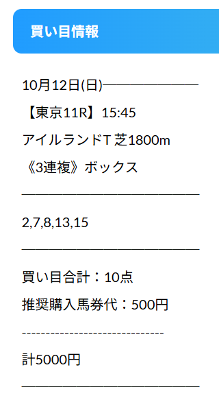 第一回開催となったアイルランドトロフィーの無料予想当たりましたよ!
