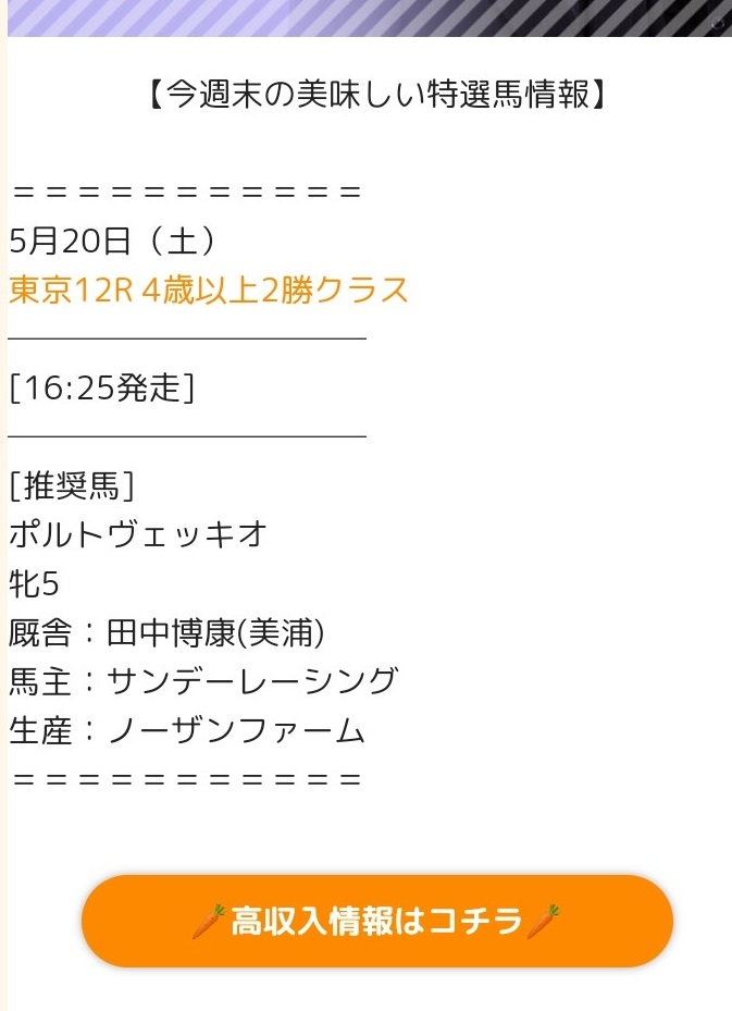 だめでした、一応日曜日の無料情報です。 スクショしておきました。