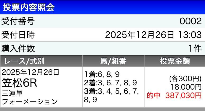 馬単は資金が足りず3連複のみでいきましたが最高の結果となりました😆
